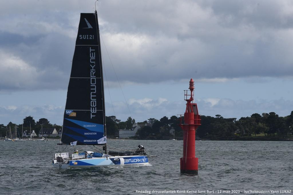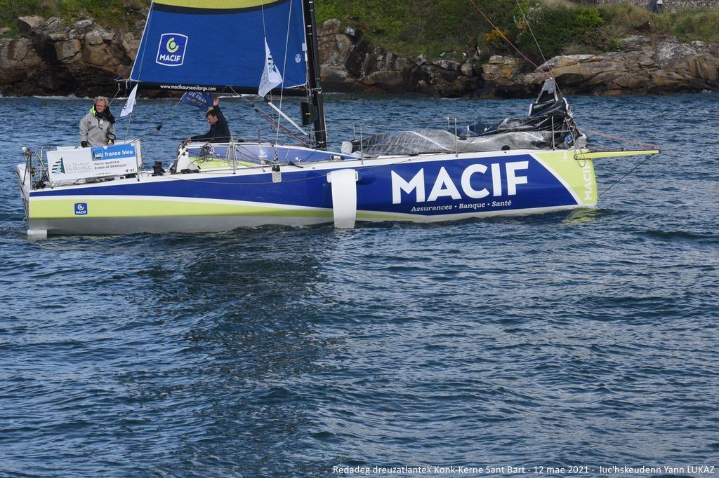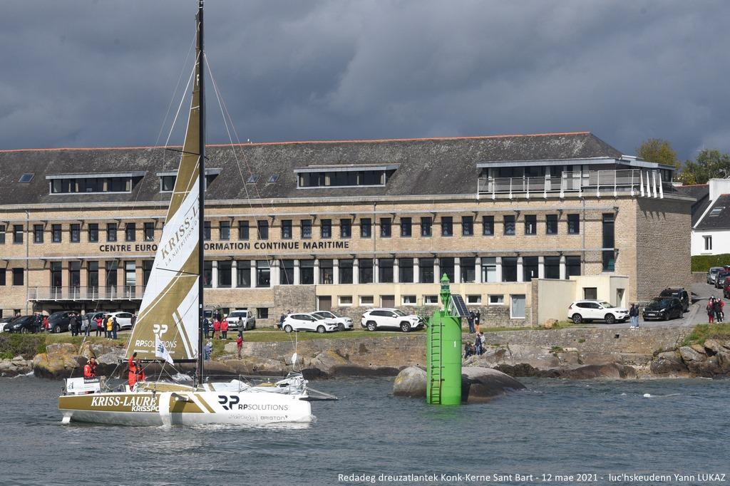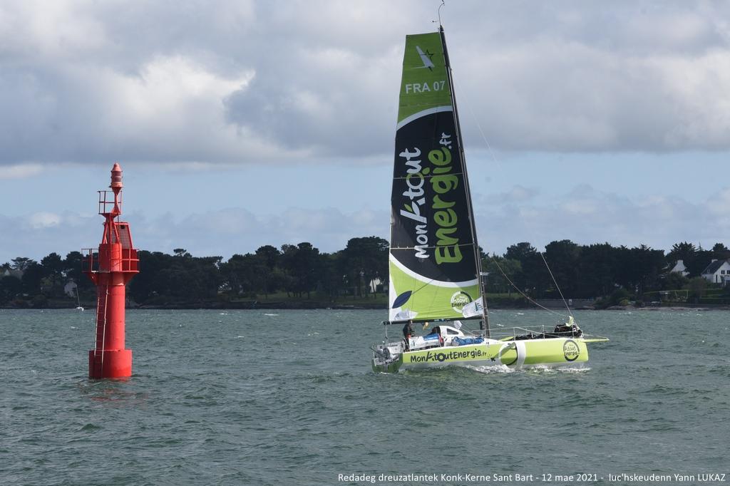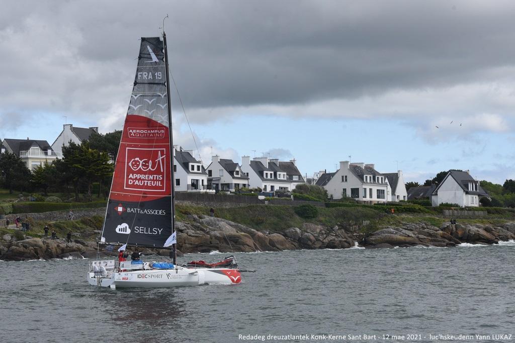 Gwall-amzer a-raok an disparti.Daleet rak ar gwall-amzer, ha rak-se goude ur rakredek e bae ar Forest-Fouenn (Penn-ar-Bed), ez eo aet kuit an triwec’h redermor er-maez eus porzh Konk-Kerne, unan hag unan, dirak un engroez bihan. Yenig e oa an amzer. Un tamm avel a lakae ar c’houmoul skañv o redek en oabl. Kenavo Breizh, emgav a vo a-benn teir sizhunvezh (war-dro penn-kentañ miz Even) en tu all d’ar meurvor atlantel.