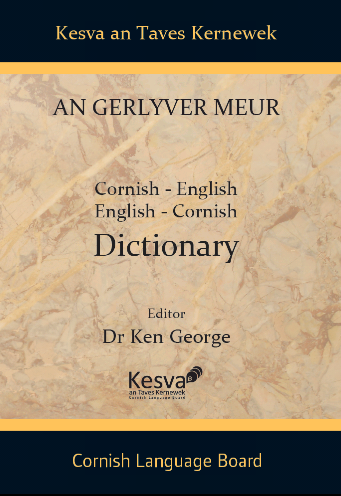 An Gerlyver Meur. Cornish-English ; English-Cornish Dictionary. Sous la direction du Dr Ken George. Édité par Tor Mark Press ; United Downs Industrial Estate ; St Day ; à Redruth ; Cornwall TR16 5HY.