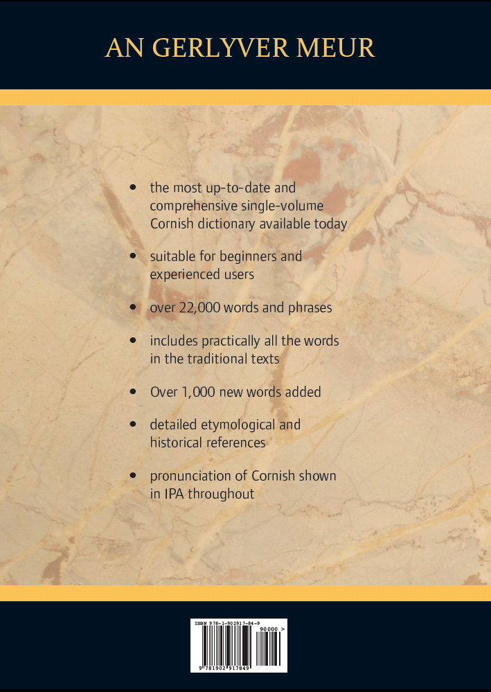 To anyone interested in the Celtic languages, in particular the Brythonic branch, the publication of a new up-dated edition of An Gerlyver Meur, Kernewek - Sowsnek, Sowsnek - Kernewek, is an event to savour and celebrate.