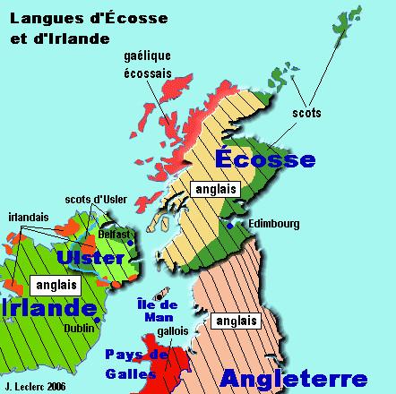 Alors que l'Écosse déclare le gaélique, langue celtique, langue officielle, les langues les plus parlées sont le scot et l'anglais