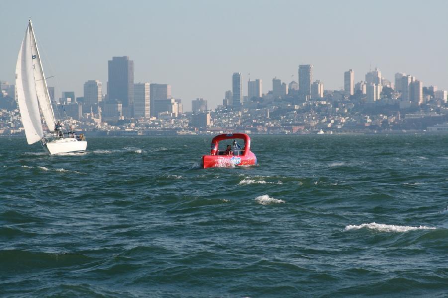 Un départ magnifique Le soleil radiait ce matin sur la « City of the Bay ». Et le vent était de la partie aussi. Bref que demander de plus pour l\'amorce de ce défi Adrien. Après un dernier briefing et les ultimes réglages à bord de son Oceankite, Anne Quéméré a été remorquée jusqu\'au point de départ situé sous le Golden Gate. De là, la navigatrice a commencé toutes les manœuvres nécessaires à l\'envol de son aile : pomper les boudins de son aile de Kite, tendre les fils qui la relient à son aile, lever l\'ancre… Et la dernière étape la plus délicate sûrement : faire lever son aile. En tout, il lui aura fallu 45 minutes avant de vraiment s\'élancer.
