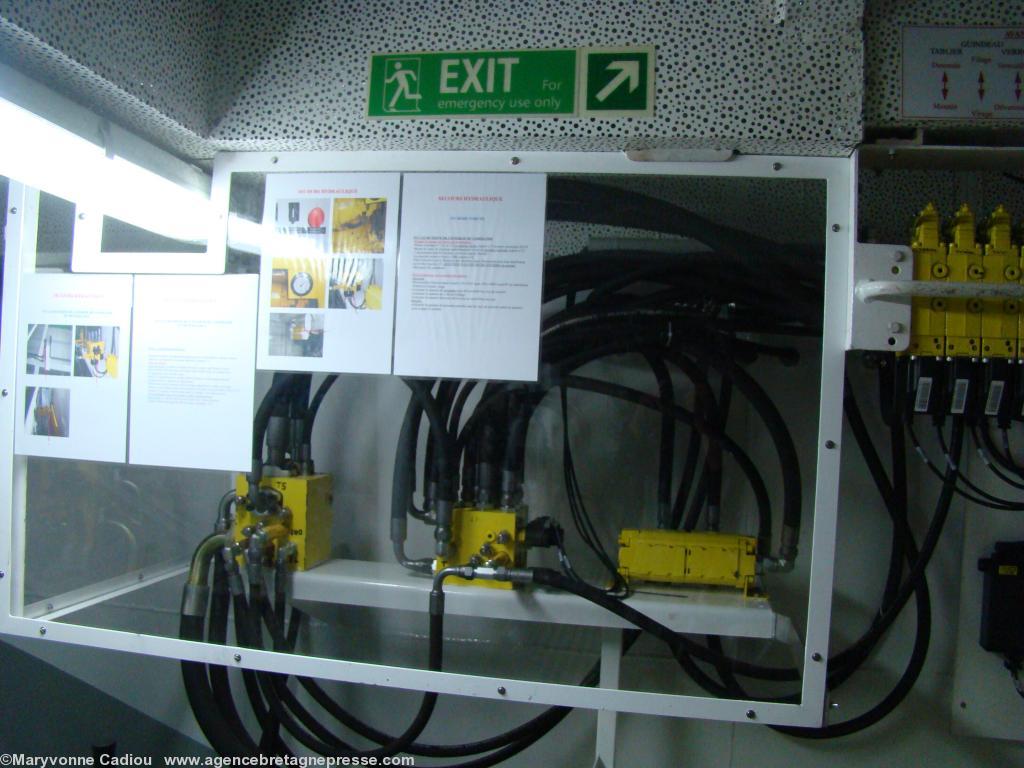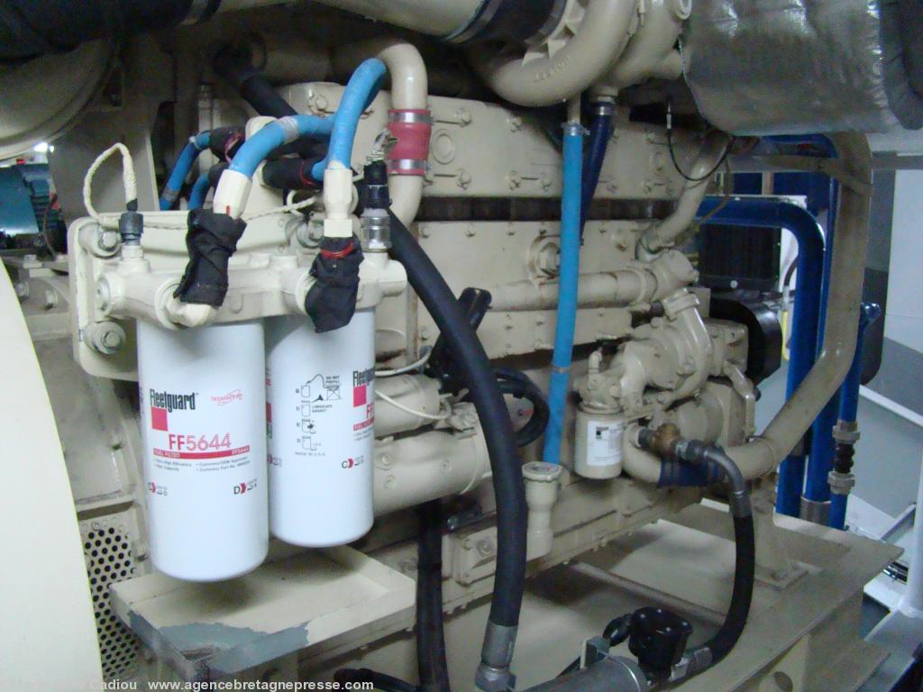 - En route pour la salle des machines. Visite aimablement proposée par Louis Loussouarn. <i>En bas vous trouverez des bouchons d'oreilles</i> (ou voulait-il dire un casque anti-bruit ?).