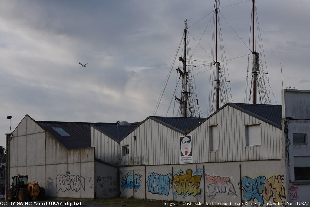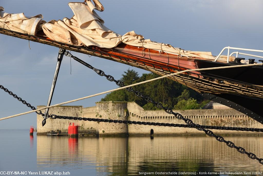 Ur vrav a souezhadenn e oa e porzh Konk-Kerne, dimerc’her. N’eo ket ar vigi-dre-lien hengounel a vank aze, mes houmañ zo brasoc’h, bravoc’h. En he benn-adreñv emañ banniel an Izelvroioù, divent, dispak, lusk-dilusk. Dic’hortozet krenn eo houmañ, hag hi deuet deus a-bell…Piv eo ? Tostaomp outi…doustadig…N’eus nemet ral a dud er porzh er mare-mañ, e-kreizig ar sizhunvezh, etre amzer-Fask hag an hañv.