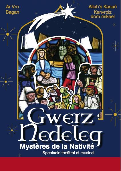 Chants en Breton, textes en breton et en français. Ce spectacle vivant et original raconte les scènes de la Nativité du Christ inspirées des évangiles de Saint Luc et Saint Mathieu et des calvaires bretons. Musique de Schütz, Monteverdi, Bach ... Chants traditionnels bretons et gallois