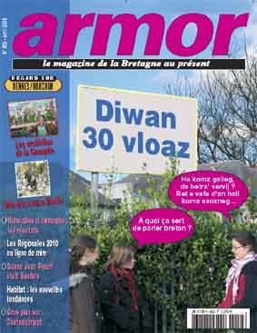 A l'occasion des 30 ans de Diwan, la Une d'armor magazine s'intéresse à cette méthode d'enseignement qui a fait ses preuves mais dont l'avenir reste incertain – A lire aussi, les Régionales 2010 en ligne de mire – Les orchidées de la Canopée – Brucero croque Merlin – Quand