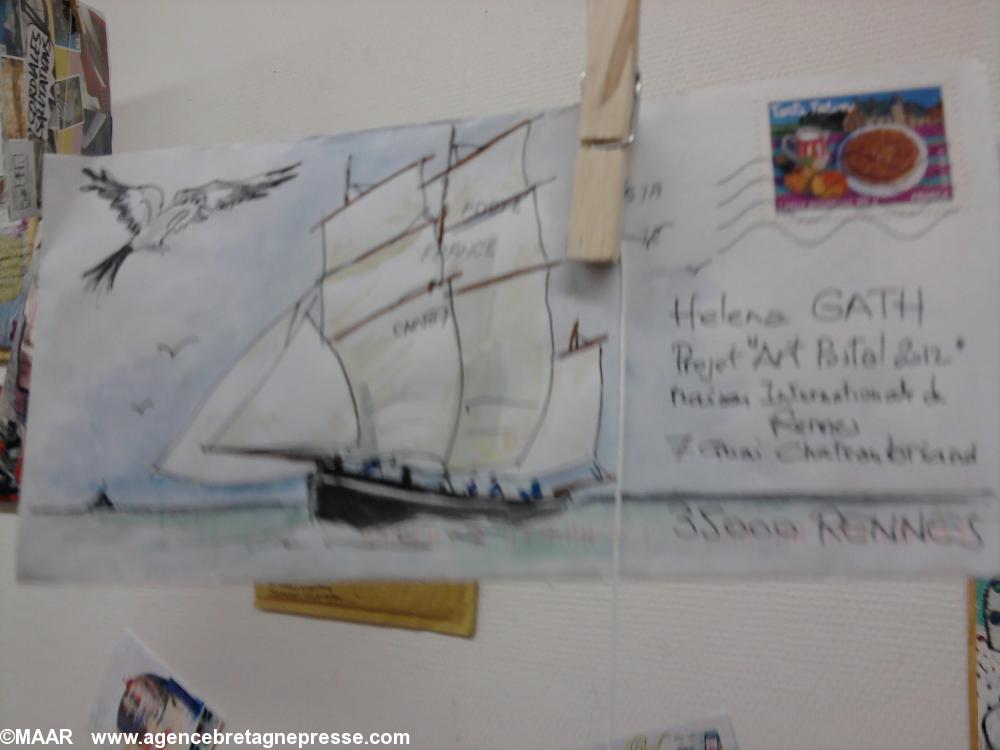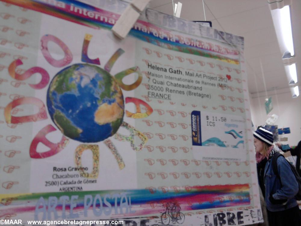 Le 14 novembre avait lieu le vernissage d'une exposition d'art postal organisée par l'artiste Hélena Gath. Hélena est venue une matinée, dans le lieu a trouvé celui-ci propice pour toute expression artistique, un bon médium pour son projet. La première sollicitation a eu lieu en mai pour aboutir à cette exposition de novembre. Le mouvement artistique Art Postal a 50 ans. Ray Johnson est considéré comme le père du mouvement. Cette forme d'expression existe depuis longtemps au niveau mondial. Hélena est Franço-Argentine, française par sa mère et argentine par son père. Elle a appris l'art au contact des amis de son père, des grands maîtres argentins : Toress Aguéro, l'atelier de Gabriela Abéras Thirrey et Dora Castro s'adonnait à faire des cadavres exquis. 200 lettres environ sont arrivées des quatre coins du monde : Russie, Australie, Argentine, Brésil, Mexique, Italie, Espagne, Roumanie... Ce projet était en relation avec deux artistes de Corral de Piedra qui font vivre l'art dans la pampa argentine. L'Art Postal est un réseau d'expression collective et solidaire. Des milliers de mail-artists échangent des projets dans le monde entier, parfois réunis comme les membres de l'Iuoma International union of mail-artists. Cette exposition se tenait à l'occasion de la 15ème édition de la solidarité internationale et pour la lutte pour la liberté des cubains prisonniers politiques des Etats Unis. L'exposition s'est déroulée du 14 novembre au 27 novembre.