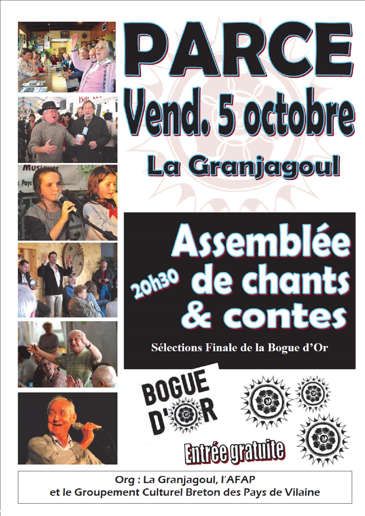Le vendredi 5 octobre se tiendra à la Granjagoul l'assemblée locale pour les sélections à la Bogue d'or, à laquelle vous pouvez participer en vous inscrivant sur place. Venez écouter chanter et conter à partir de 20h30.