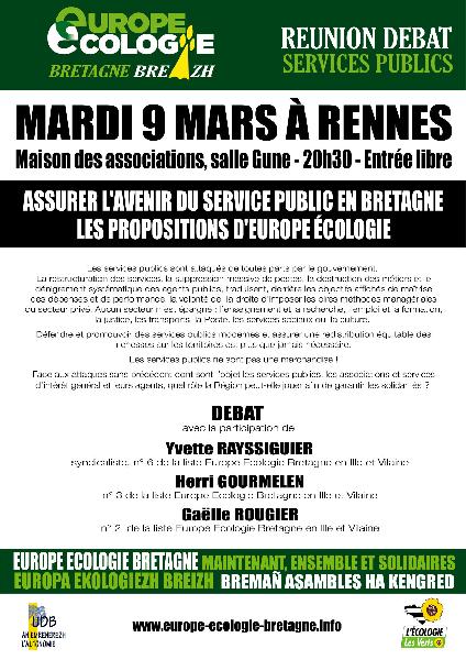 Assurer l'avenir du service public en Bretagne, les propositions d'Europe Écologie mardi 9 mars à Rennes.