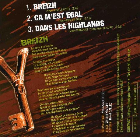 Le nouveau CD du groupe de pop/rock Atlantyka est un 3 titres qui s'appelle Breizh. La chanson du même nom parle sans détour de la scandaleuse et antidémocratique partition de la Bretagne