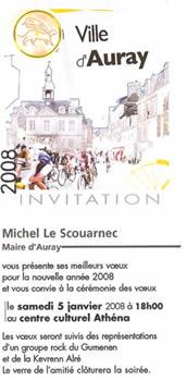 Pas de breton sur la carte d'invitation aux vœux du maire d'Auray ! Dommage, car Michel Le Scouarnec, maire PC de la commune, est pourtant un réel défenseur de l'école Diwan. Il est vrai qu'il a dans son équipe municipale quelques vieux jacobins, affiliés au PS, qui avaient déclaré il y a quelques mois qu'"entendre parler de Diwan leur donnait des boutons"