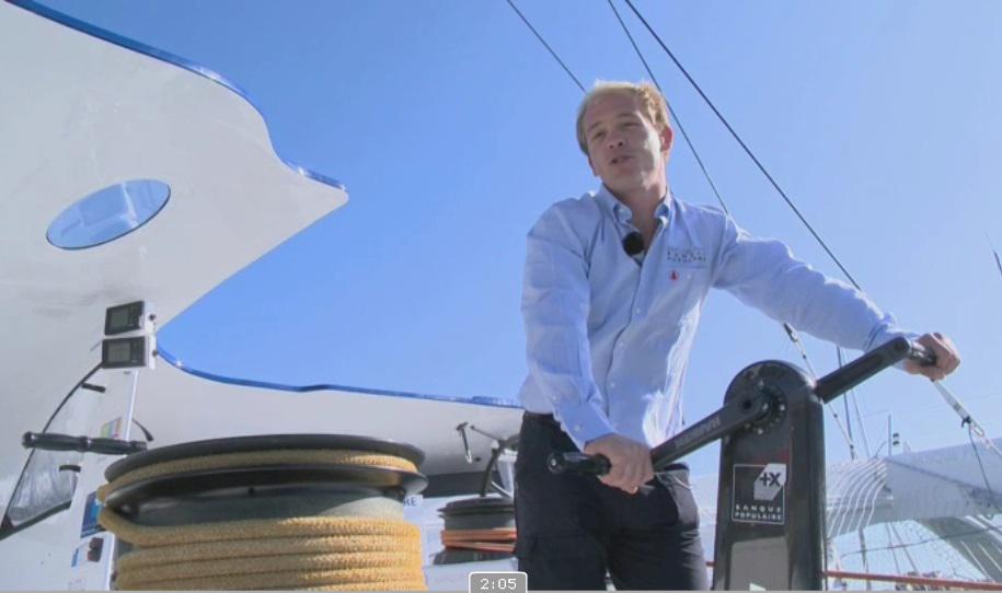 http://www.voile.banquepopulaire.fr/Maxi-Trimaran-Banque-Populaire-V/Video-Visite-du-pont-du-Maxi-Banque-Populaire-V-avec-Kevin-Escoffier-3284.html pour visionner la video de 3'43".