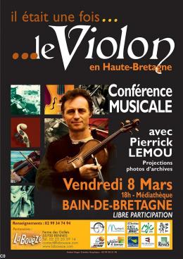 Dans le cadre d'une conférence-concert organisée en partenariat avec La Bouèze, Pierrick Lemou, violoniste réputé et collecteur expérimenté, entraîne son auditoire à la découverte de cet instrument et de son étonnante histoire. Au jeu de son archet, il mêle en paroles, en musique, en illustrations, exposés, témoignages, projections d'images et photos d'archives. Cela fait de cette conférence un véritable concert pendant lequel Pierrick Lemou promène les oreilles des auditeurs à la découverte des styles, des terroirs et du répertoire des grands violoneux du pays gallo.