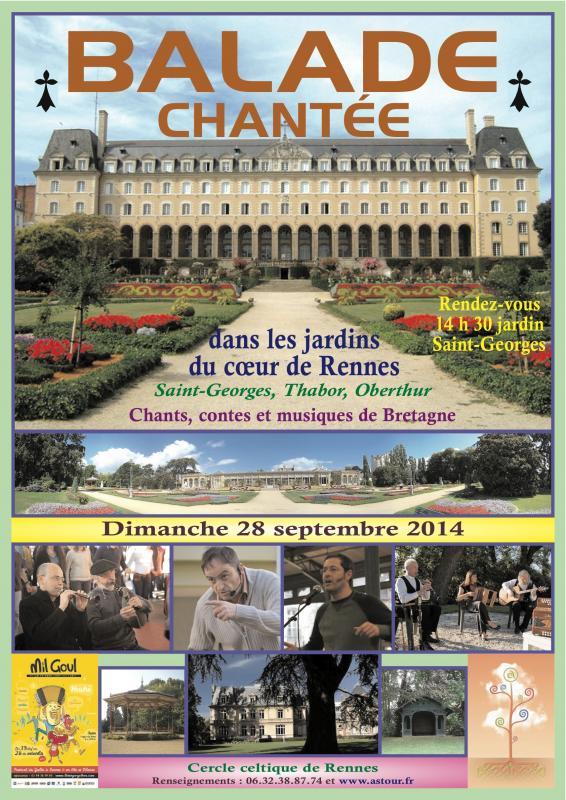 ASTOUR vous convie à LA BALADE CHANTEE qu'il organise.: DIMANCHE 28 SEPTEMBRE 2014 Dans les jardins du coeur de RENNES. RDV à 14h30 dans le jardin St Georges. Dans le cadre de Mil Goul,