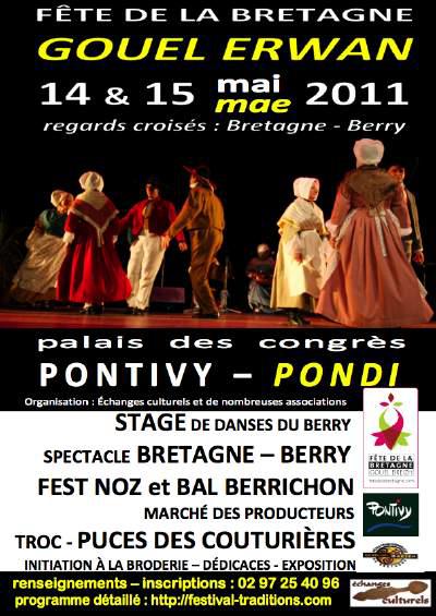 Echanges culturels ? C'est une association de Pontivy qui depuis plusieurs années organise des échanges avec d'autres groupes de danses et de musique. Hongrie, Lithuanie, Slovaquie ... et pour la Fest'Yves, la fête de la Bretagne, c'est le Berry qui est invité.