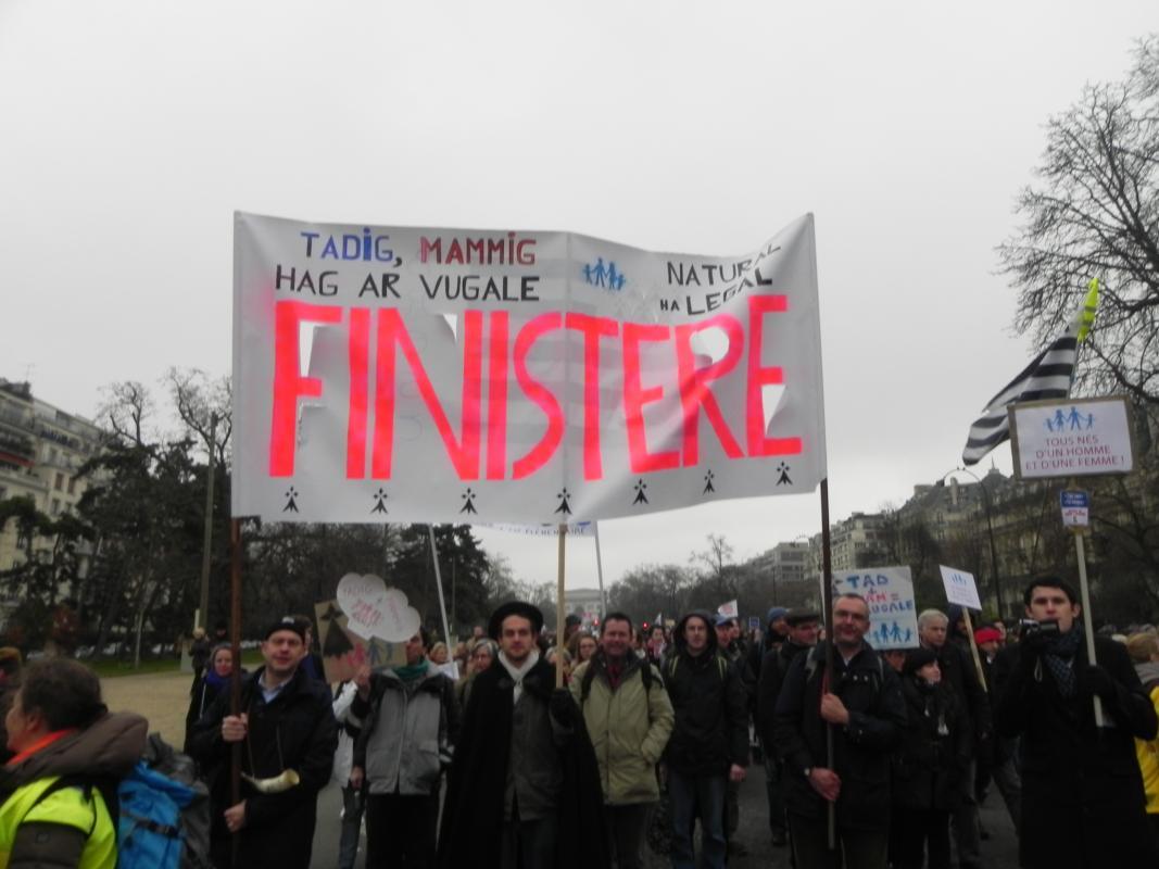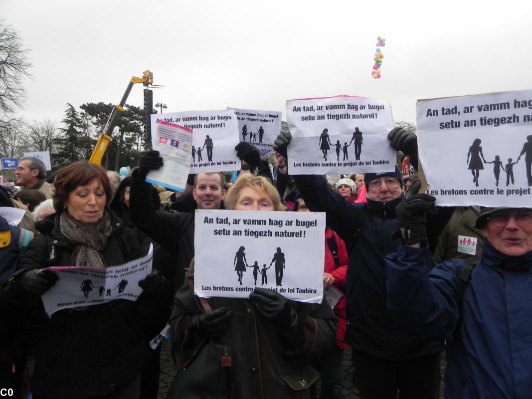 En o zouez e oa un nebeut tud o vanifestiñ e brezhoneg. Un degemer c'hwek o deus graet dezho izili Emglev An Tiegezhioù Pariz gant son ar binioù mar plij, en un aergelc'h laouen-tre.