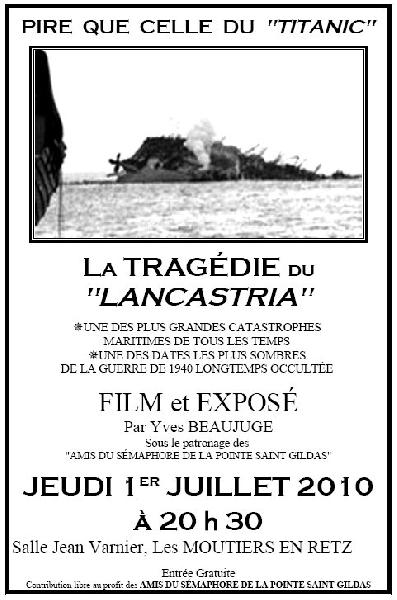 Une autre conférence est annoncée pour le 16 juillet, au sémaphore de Préfailles à 20 h 30. http://www.lelancastria.com/Conference-Lancastria-2010.html