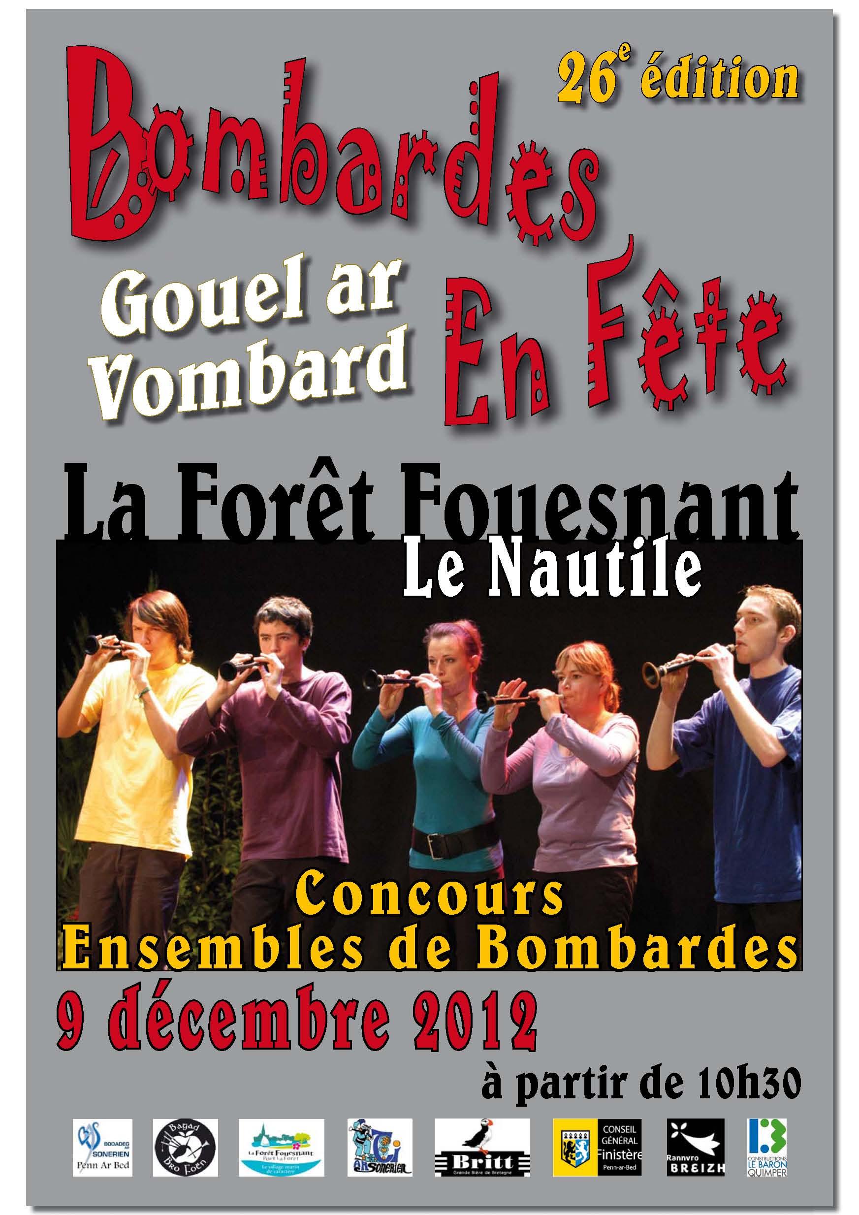 Dimanche 9 décembre, à partir de 11 h, aura lieu toute la journée, des concours d'ensembles de bombardes, dans le cadre de "Bombardes en Fête", dans la salle du Nautile, à La Forêt-Fouesnant.