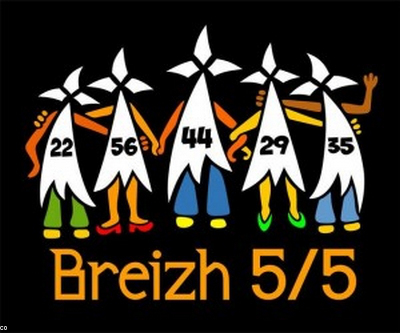 Toutefois, il vient de lancer une initiative des plus intéressantes portée par le collectif trégorrois Breizh 5/5. L'idée vise tout simplement à diffuser largement une image simple, lisible, positive et partagée que l'artiste a réalisée. Elle affiche et affirme l'unité bretonne et -à l'instar de la fameuse bigoudène qui a été très largement diffusée- peut devenir un symbole de la Bretagne avec une dimension plus politique.