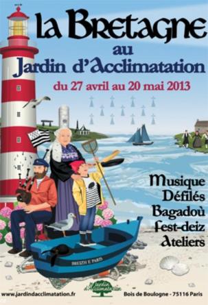 Ce n\'est pas une nouvelle Breizh Touch comme en septembre 2007 mais plus de 3 semaines d\'animations bretonnes, avec des concerts, des bagadoù, des défilés, de la danse en fest deiz, des dédicaces de livres, des ateliers pour les enfants, des animations, des contes... sans oublier la gastronomie. Au Jardin d\'Acclimatation, dans le Bois de Boulogne, près de la Porte Maillot. Le budget en serait de un million d\'euros. Voir le programme complet et par jour en PDF ci-dessous ou en lien direct : http://www.jardindacclimatation.fr/uploads/document/1_1366991038_programme_la_bretagne_au_jardin.pdf