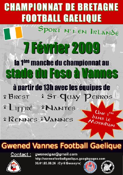 After a first leg scheduled in Nantes on December 13th 2008 but postponed due to bad weather conditions, the new season of the Breton Gaelic Football Championship finally starts this Saturday, February 7th, in Vannes.