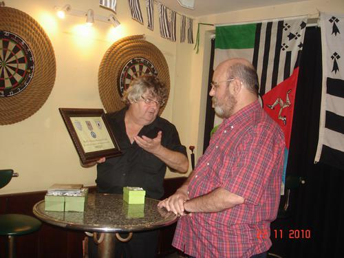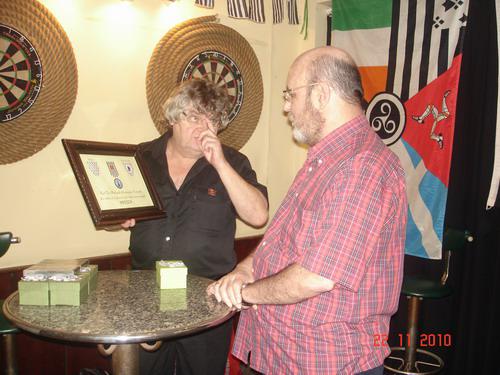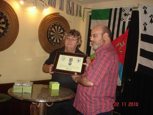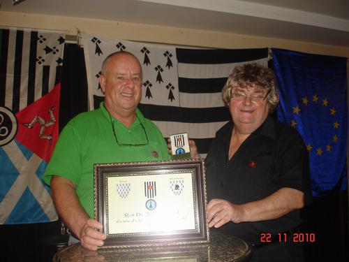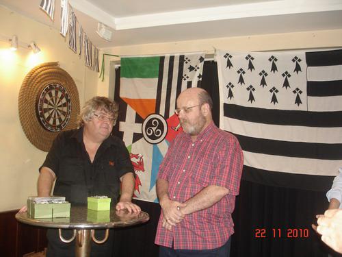 Goude bezan klevet prezegenn kadoriad KBBV, Mikael Gwilhom, o tisplegan istor Nominoe ha pouez trec'h e Ballon evit hor vro ez eo bet dereet merkoù a enor Urzh ar C'Horvelloù da Micheal Forsyth eus Bro Iwerzhon, perc'henn tavarn Sheridan. Tavarn Sheridan a zo ur poent bodennin evit tud ar broioù keltiek hag arall e Saïgon.