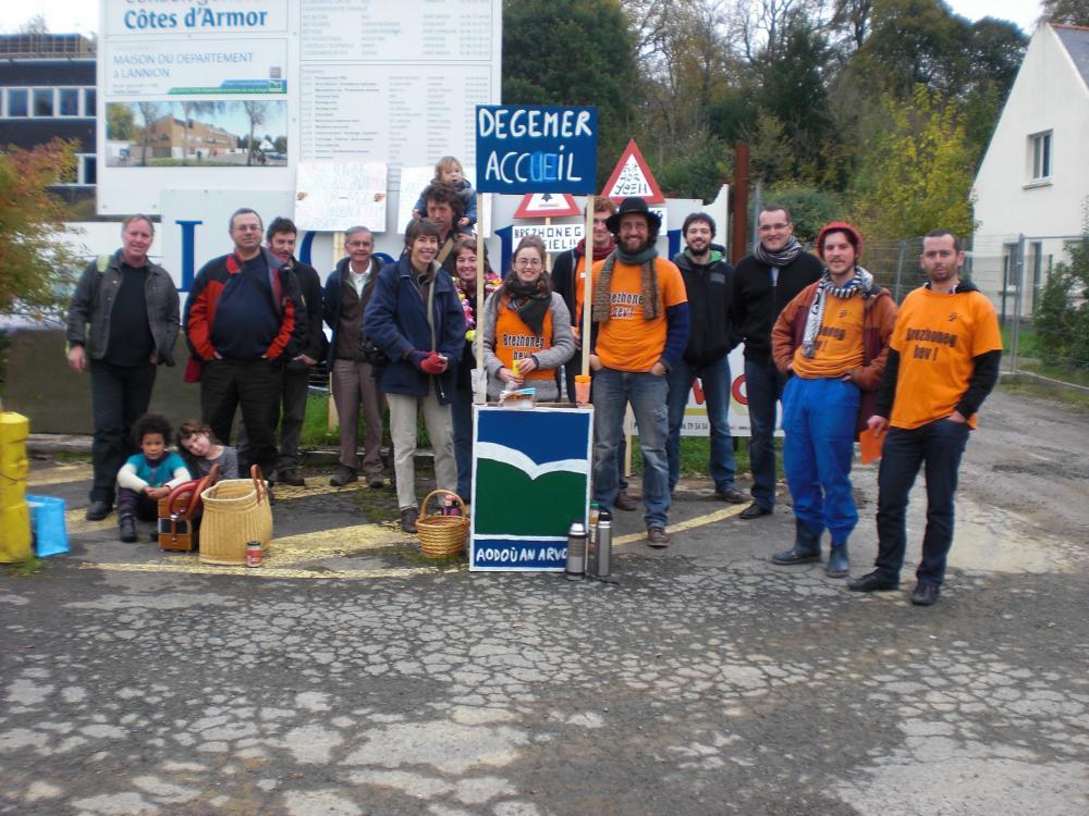 Dec'h beure e oa ouzhpenn 20 den, stourmerien Ai'ta ! ha sitoained Lannuon ha pelloc'h en Treger, bodet dirak chanter Ti an Departamant e Kervaria. Ur goulenn groñs gante :
