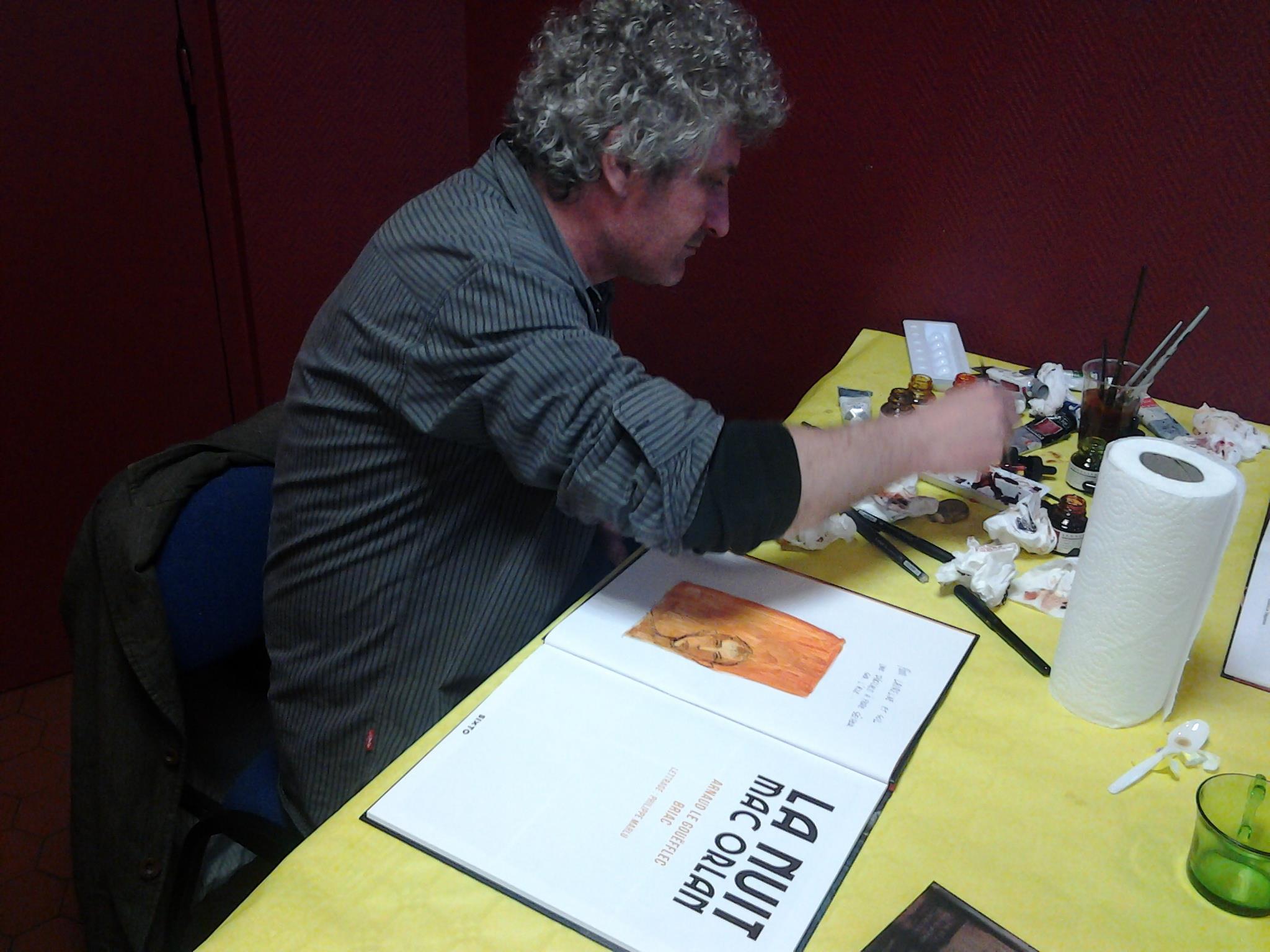 Lui qui travaille à l'encre et à la peinture acrylique, trouve son inspiration chez des peintres tels que Schiele, Munch ou Bacon, mais aussi dans l'expressionnisme du cinéma allemand des années 30. Mots et Images, Guingamp : 10 h à 19 h.