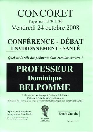 L\'association Sauvegarde de Brocéliande, qui est toujours aux prises avec le projet d\'une gigantesque décharge d\'ordures aux abords de la forêt, vous convie à une conférence-débat sur le thème « Quel est le rôle des polluants dans certains cancers ? ».
