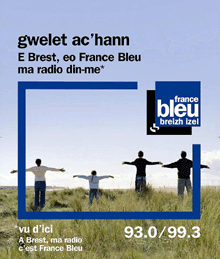 Gwelet ez eus bet eta e kêr Vrest un toullad busoù lakaet outo ar skritell da heul : « Gwelet ac'hann, e Brest eo France-Bleu ma radio din-me ».