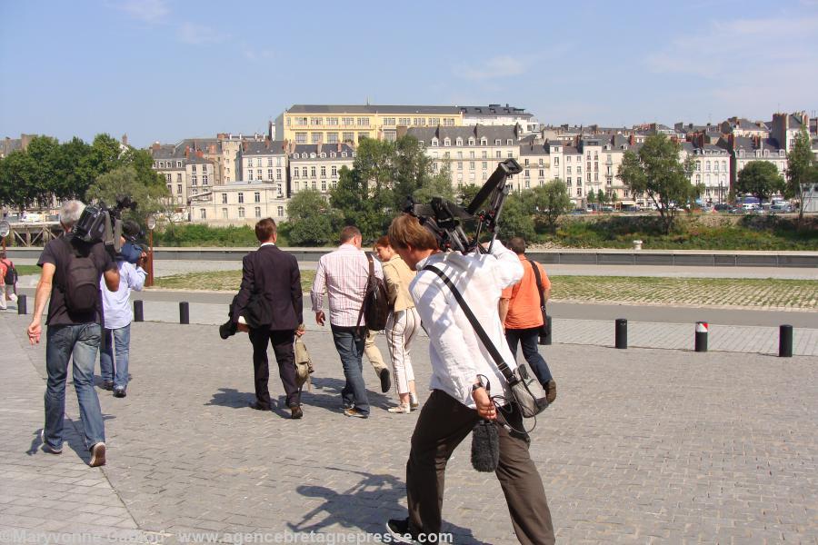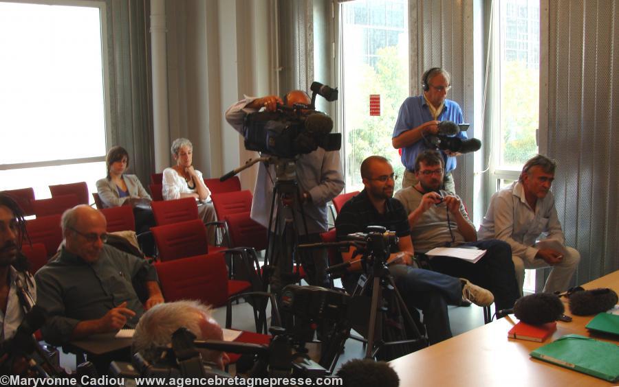 - Une partie de la salle de presse. Debout le beau-père de Thierry Lemétayer fait un reportage. À droite Tim Finan le journaliste britannique installé en Bretagne (voir note 4 du texte).