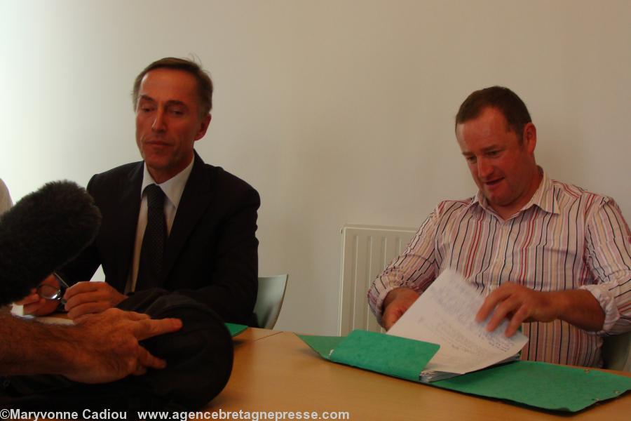 - Maître Dominique Tricaud et Thierry Lemétayer à la conférence de presse suite à leur audience par le juge d'instruction Jacky Coulon à Nantes ce 29 juillet