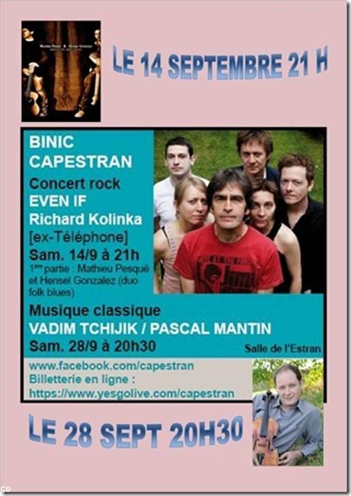 Capestran Binic ouvre sa saison 2013/2014. Le 1er concert Pop Rock aura lieu le samedi 14 eptembre 2013 avec EVEN IF, groupe créé par Richard KOLINKA, ex-batteur du groupe TELEPHONE