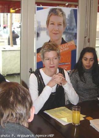 Caroline Ollivro, candidate du Modem pour Rennes, présentait aujourd\'hui au café de la Paix, son projet politique pour l'agglomération rennaise. Caroline Ollivro veut \"gouverner autrement\".