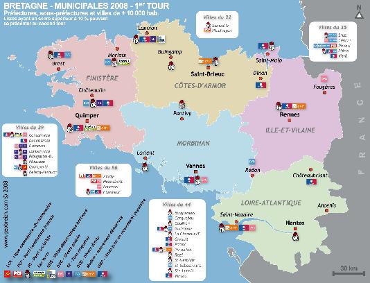 Voir la carte en grand format sur Geobreizh.com http://www.geobreizh.com/breizh/cartes-thematiques/municipales2008.asp