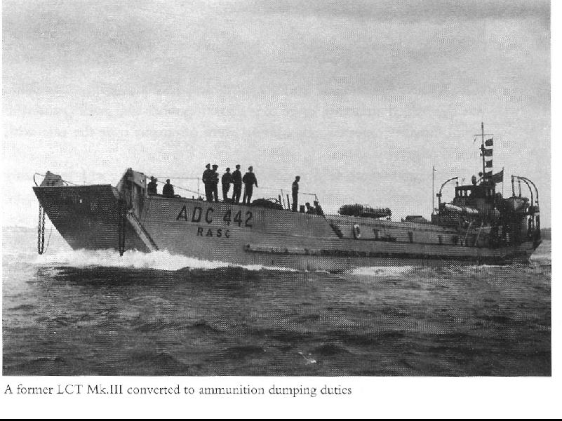 During the main explosive dumping period from 1945-1960 up to 24 Tank Landing Craft (LCTs) euphemistically called Ammunition Disposal Craft (ADCs) were used together four coasters and a number of ex-trawlers to provide support in the Beaufort Dyke operation. In addition larger vessels were used several of which several were scuttled with cargoes of chemical weapons in deep water to the West of Scotland and off Donegal. On occasion cargoes destined for deep water disposal were diverted to Beaufort Dyke because of bad weather