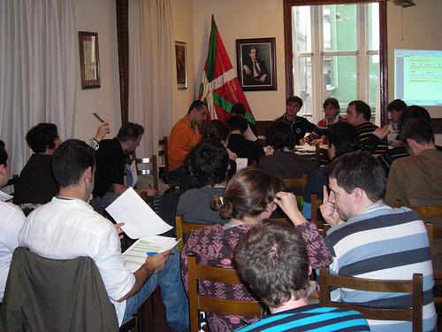 Last weekend, Rhisiart Tal-e-bot addressed the annual congress of Basque political youth Gazte Abertzaleak (GA) in Bilbo/Bilbao, Basque Country, who elected a new Secretary General and Bureau of the organization. Also present at the congress was Unai Ziarreta, President of Basque nationalist party Eusko Alkartasuna, who had also been invited along to speak.