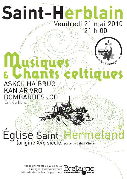 Joyau du patrimoine architectural et historique herblinois l'église Saint Hermeland, dont l'origine remonte au XVe siècle, accueillera un concert mêlant musiques et chants traditionnels avec des compositions contemporaines interprétés par l'ensemble Bombardes & Co, la chorale Kan ar Vro et le pipe band Askol ha Brug (cornemuse et orgue).<