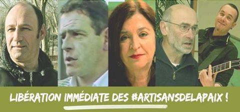 Nous demandons la libération immédiate des #ArtisansDeLaPaix Txetx Etcheverry, Michel Berhocoirigoin, Michel Bergougnian, Béatrice Haran-Molle, Stéphane Etchegaray".