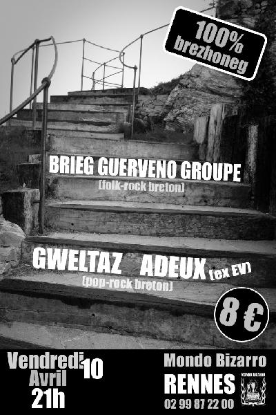 Brieg Guerveno Groupe et Gweltaz Adeux. Deux groupes, deux chanteurs s'exprimant entièrement en breton. Gweltaz Adeux figure emblématique
