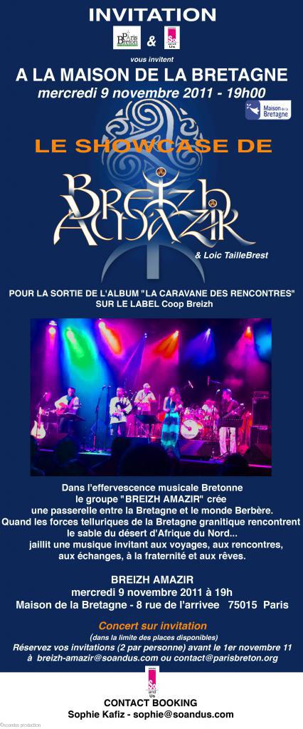 Paris Breton, Soandus production et la Maison de la Bretagne organisent le concert de Breizh Amazir avec Loïc Taillebrest le mercredi 9 novembre. Pour recevoir une invitation écrire à