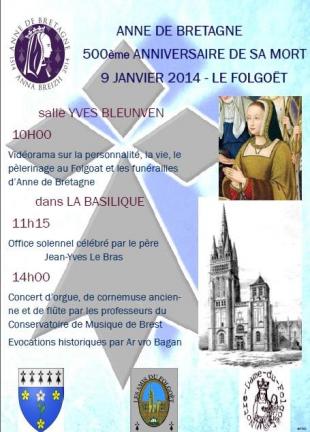 LE FOLGOET : messe le 09 janvier 2014 pour le 500e anniversaire de la mort d\'Anne de Bretagne