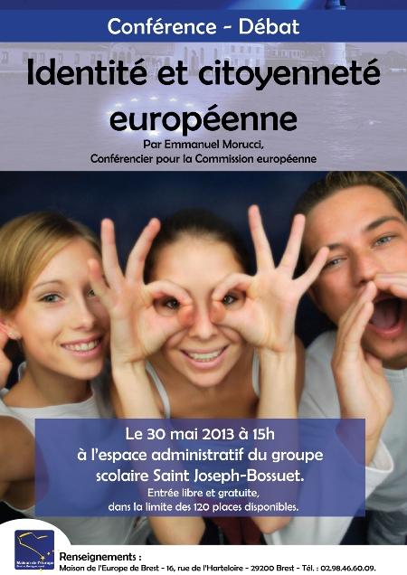 Dans le cadre de l\'Année européenne des citoyens 2013 et des Semaines Galloises, Emmanuel Morucci, président de la Maison de l\'Europe de Brest et conférencier pour la Commission européenne présentera les enjeux de la citoyenneté européenne lors d\'une conférence intitulée « Identité et citoyenneté européenne ». Emmanuel Morucci, de par son implication de longue date dans les questions européennes, fera part de ses connaissances aux lycéens du groupe scolaire Saint Joseph Bossuet à Lannion et au grand public, concernant la citoyenneté européenne. « Peut-on parler d\'une identité européenne ? Qu\'est-ce qu\'être un citoyen européen ? Quels enjeux soulèvent la citoyenneté européenne à l\'horizon des élections européennes de 2014 ? » Ces questionnements feront partie des nombreux points abordés lors de cette intervention afin de sensibiliser, d\'informer et de soulever le débat auprès des jeunes costarmoricains sur les questions européennes.