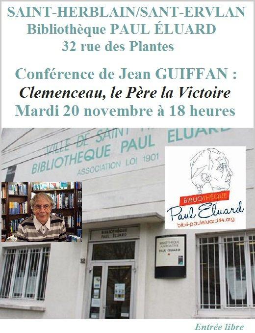 Monsieur Jean-Jacques Dejenne, directeur de la bibliothèque associative Paul Éluard de Saint-Herblain, annonce une conférence de Jean Guiffan, historien breton nantais.