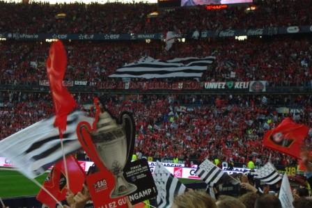 Une atmosphère à couper le souffle avec ces milliers de drapeaux bretons, et le noir et rouge, couleur commune aux deux équipes de Guingamp et Rennes. Des supporteurs sans ostracisme, mais n'oubliant pas les règles du jeu, ont acclamé les leurs et ont hué les autres mais ce n'est qu'un jeu. Comme le souligne la phrase la plus entendue dans le métro "On est tous bretons, c'est la Bretagne qui va gagner !