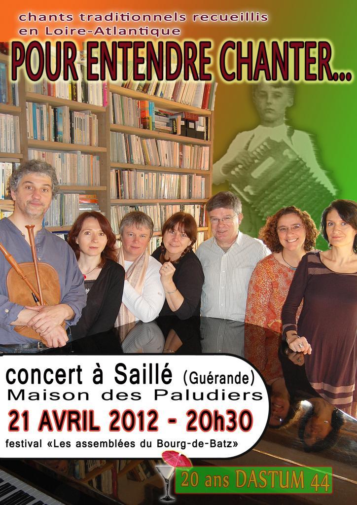 Samedi 21, Saillé : Concert " pour entendre chanter " les Assemblées du bourg de Batz, Maison du Paludier ou Salle Polyvalente. Rens. Dastum 44 : 02 40 35 31 05 - contact@dastum44.net - http://dastum44.net