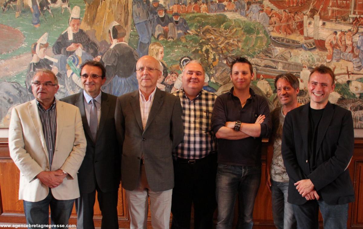 Jeudi après-midi, Bernard LE FLOC'H, adjoint à la culture et au patrimoine recevait dans la salle du conseil municipal les partenaires du cyber fest-noz 2014 prévu le dimanche 13 juillet à 20 H dans le cadre de la 60ème FETE DES BRODEUSES. Le comité des Brodeuses était représenté par son président Gérard MOURRAIN et Yves CANEVET vice-président, la société ORANGE par son régional Christophe HERVE, les SONERIEN DU et AN TOUR TAN par Nicolas Le GONIDEC.