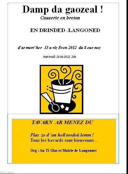 Kaozeadeg en davarn "Ar Menez-Du" d'ar Merc'her 13 a viz Mezheven 2012 da 8 eur noz.