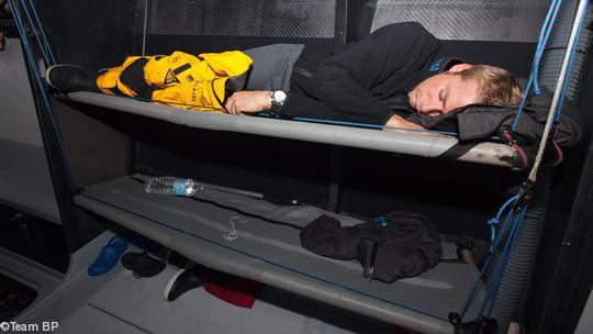 C’est une des rares concessions faites au poids, car ces oreillers ergonomiques sont très denses et donc relativement lourds. Mais tout le team s’est mis d’accord : le sommeil est si précieux à bord, qu’on a privilégié le confort. Et pour éviter les problèmes d’humidité pouvant nuire à une bonne qualité de sommeil, des panneaux de néoprène de 2mm ont été posés le long des bannettes pour permettre aux navigants de dormir bien au sec.