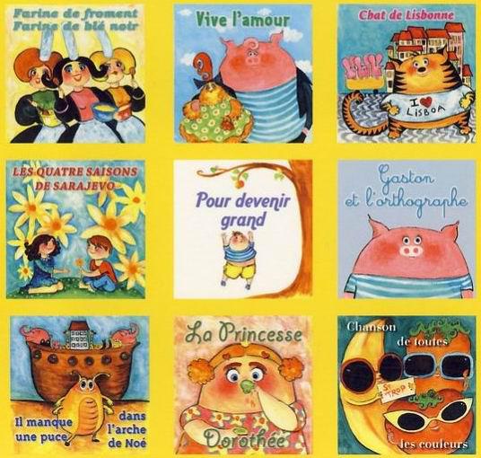 Accompagnez les enfants sur les titres : Chanson de toutes les couleurs ; Farine de froment farine de blé noir ; Les quatre saisons de Sarajevo, Pour devenir grand ; Gaston et l'orthographe ; Il manque une puce dans l'arche de Noé ; La princesse Dorothée ; Chant de Lisbonne ; Vive l'amour.