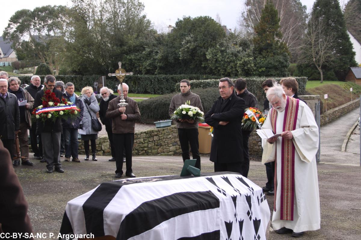 Environ 200 personnes ont assisté hier aux obsèques de Yann Poilvet en l'église de Landéhen, le village où est né ce grand militant de la cause bretonne. Le cercueil, drapé dans un gwennhadu avait reçu aussi une gerbe bleu-blanc-rouge, envoyée par le ministre Jean-Yves Le Drian, au nom du Ministère de la Défense, rendant hommage à l'engagement de Yann dans la résistance au cours de la seconde guerre mondiale mais également bien sûr à son action pour la Bretagne. De nombreux militants et amis l'ont aussi accompagné jusqu'à sa dernière demeure.